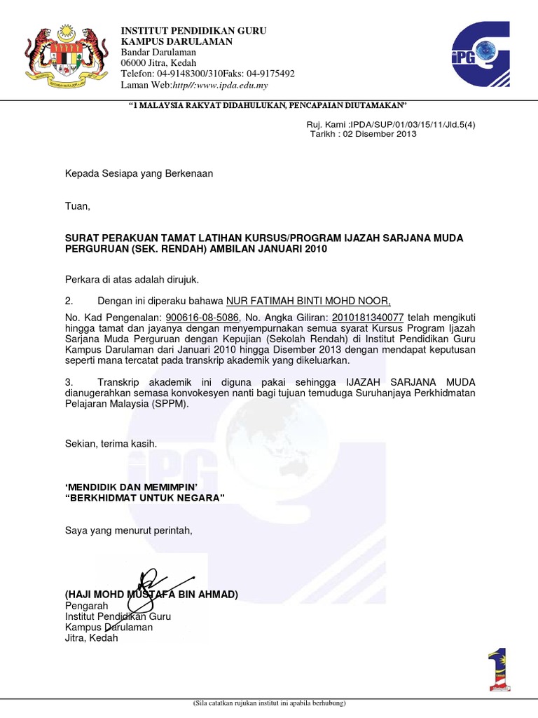 Yang benar _____ sepenuh masa separuh masa ditandatangani disahkan oleh pusat pengajian pusat pentadbiran kerajaan persekutuan jalan p56 presint 5 tuan pengesahan pengajian pelajar di pusat pengajian. Contoh surat pengesahan pelajar dari pusat pengajianpdf. Mohon rujuk makluman di laman web Politeknik Sultan Idris Shah tarikh.